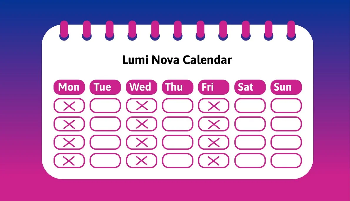 We recommend using Lumi Nova at least 2-3 times a week, for 15-30 minutes per session.